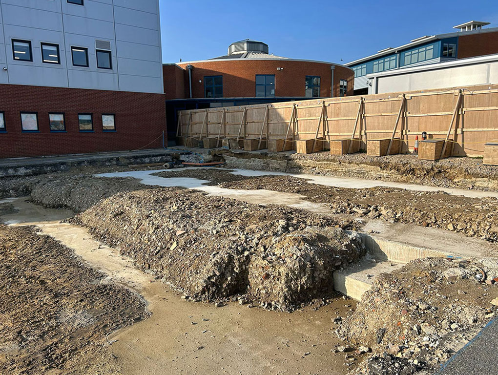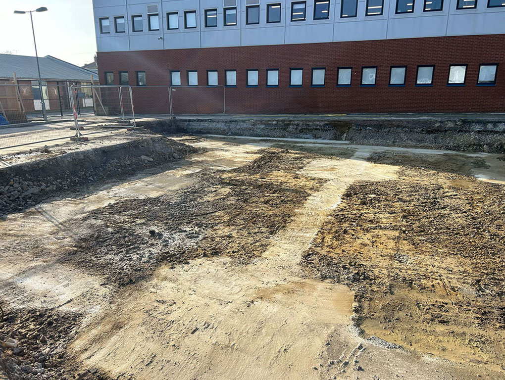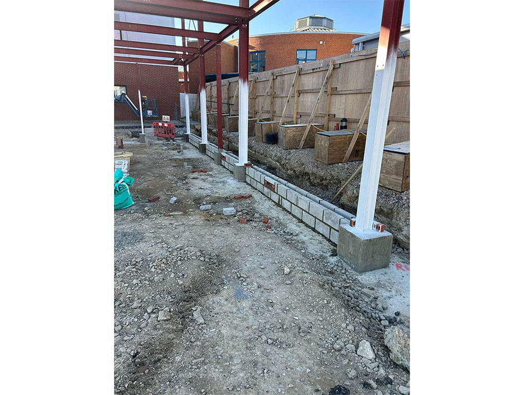 Following the successful completion of the car park extension, we were subsequently awarded an additional contract to undertake the groundwork package for a new catering block. This phase of works comprised the installation of drainage systems and the construction of structural footings in preparation for the new building.